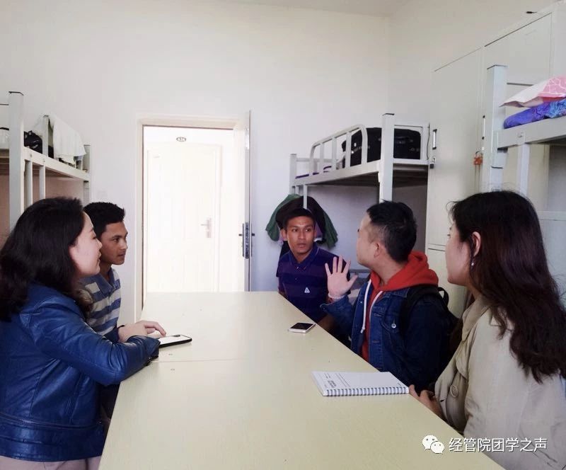4月8日下午4点,经济与管理学院分团委书记李硒,教师王瀛、沈立超来到32栋学生宿舍探望留学生。院分团