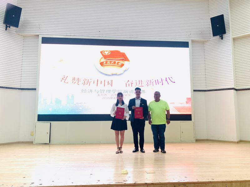 2019年4月29日晚上19:00经济与管理学院在阶梯教室三举行关于(礼赞新中国,奋进新时代)的演讲比赛。为了确保比赛的公平公正,早上10:30在教学楼218十名优秀参赛选手自己抽签决定演讲顺序。同时为更好的鼓励学生积极参与学校活动,本次演讲比赛共设有三个奖项,分别是一等奖:前两名,二等奖:三到五名,三等奖:五到十名。