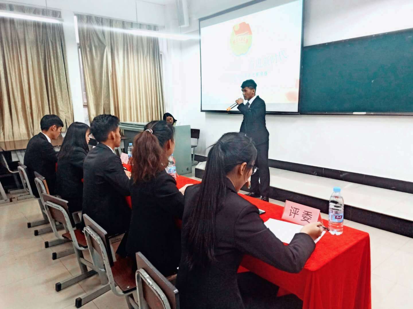代主题演讲大赛晋级赛在教学楼301-1教室成功举行,经济与管理学院团委干部及经济与管理学院学生会干部共五