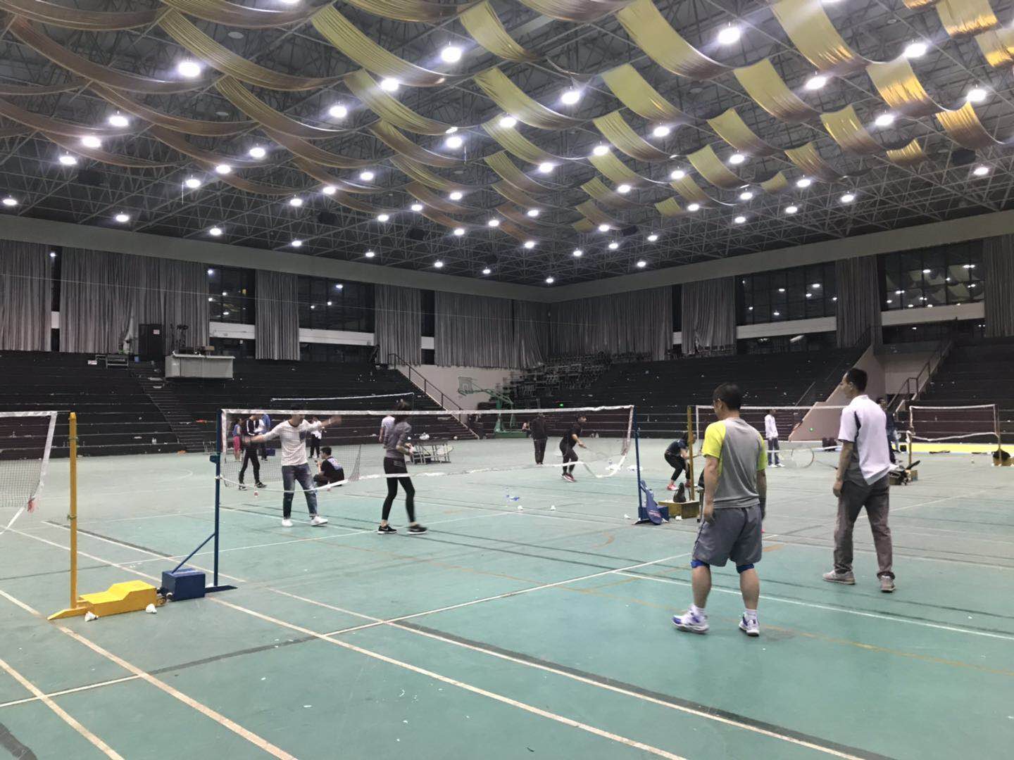 同时,教职工组羽毛球男双、女双、混双晚上7点也在体育馆内拉开序幕,经过长达两个小时的激烈比拼,最终经济与管理学院取得以下成绩:张韵,李沧临获得女双第一,赵倩男和陈琦获得女双第三;赵志永、朱庆钢获得男双第三,安力、邢健获得男双第四。张韵、朱庆钢获得混双第一,赵志永、陈琦获得混双第二,李沧临、邢健获得混双第四,安力、赵倩男获得混双第五。