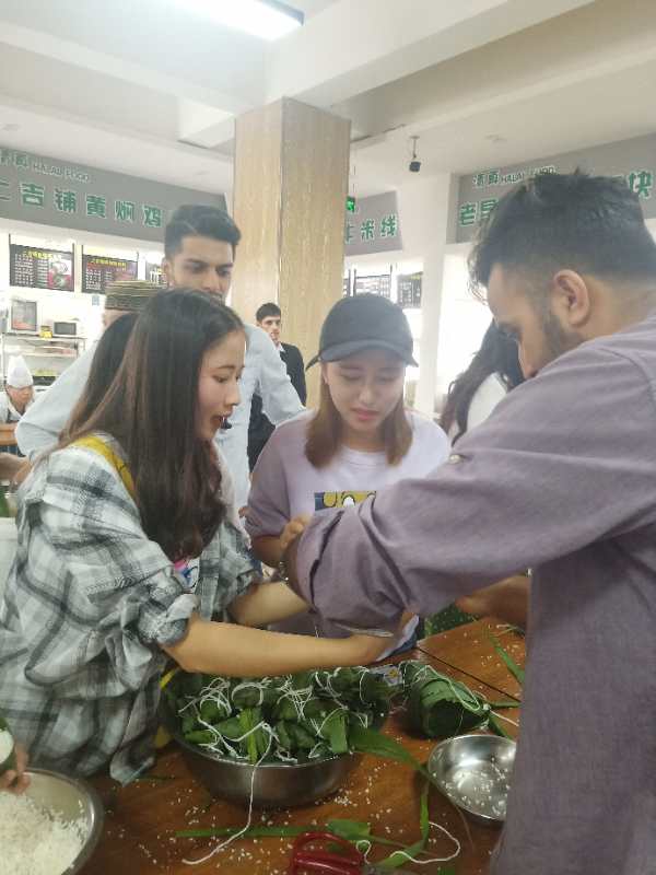2019年5月28日下午15:30的回民食堂弥漫着浓浓的粽子清香,也弥漫着浓浓的友爱之情,为了迎接中国传统文化节日——端午节,经济与管理学院团总支组织了师生与留学生一起包粽子,在这个过程中,包出了中国的传统文化,更包出了深厚的中外友谊。