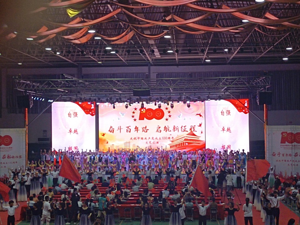 2021年是新中国历史上极为不寻常的一年,每一个中国人都会铭刻下永生难忘的记忆。“百年恰是风华正茂”,这一年是中国共产党成立的一百周年,也是“十四五”的开局之年。在2021年6月21日下午19:00,云南工商学院在体育馆开展了一场文艺汇演,以庆祝中国共产党成立一百周年。我校师生优美的舞蹈,慷慨激昂的歌曲展现出中国共产党成立一百周年所带来的巨大变化,向中国共产党致敬。