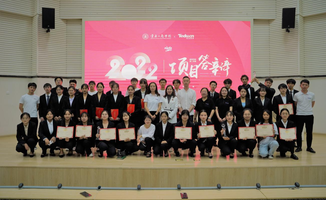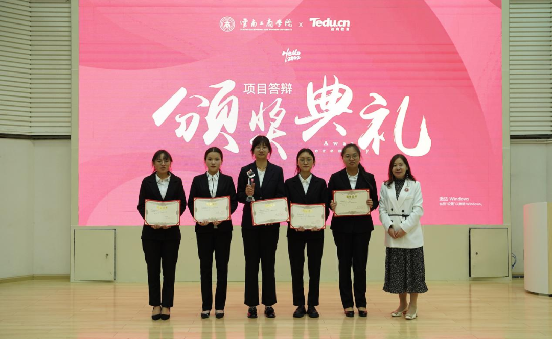 云工商教育学院王雪莲院长、云工商教育学院小教系主任张颖主任、达内集团云南分公司总经理张璐女士、达内集团中南区教学总监何伟先生、达内集团云南分公司教学主管康进国老师、达内集团云南分公司校内基地主管李爱明老师等校企主要负责人亲临现场参加项目答辩进行指导!