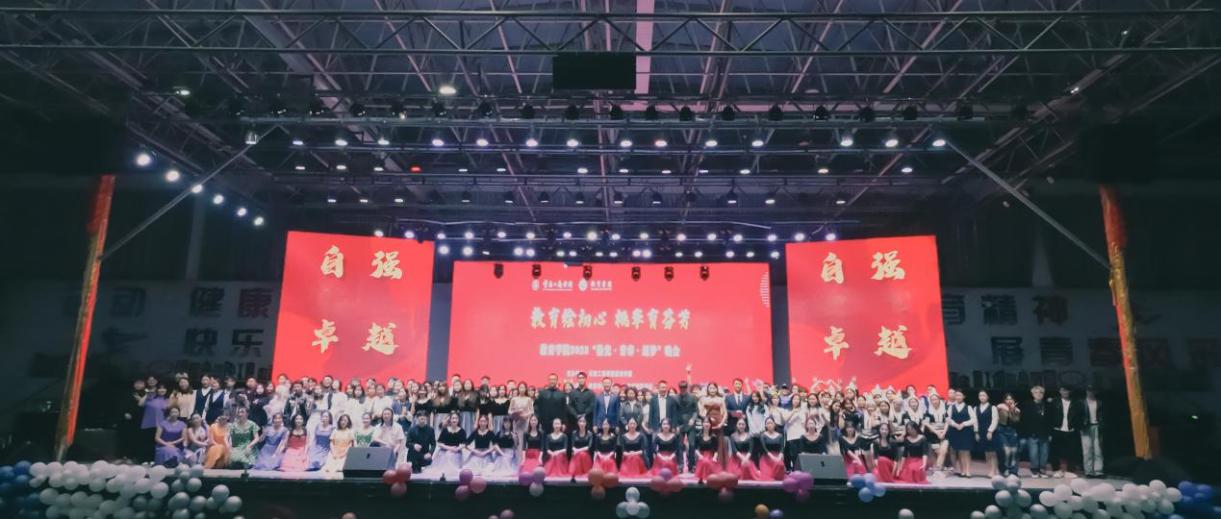 为学习贯彻党的二十大精神,推动美育教育创新发展,聚焦大学校园文化建设,丰富广大师生的校园文化生活,引导同学们培养多元化兴趣、提高自身综合素质,使同学们努力成长为全面发展的新时代青年。2023年3月7日晚19点,云南工商学院教育学院举办了2023“拾光•青春•逐梦”晚会。出席本次晚会的嘉宾有:云南工商学院监事会主席耿合武老师,学生处处长张颖老师,教育学院院长童建老师,教育学院党总支书记杨超智老师,教育学院副院长陈威老师,以及教育学院的老师和辅导员们。