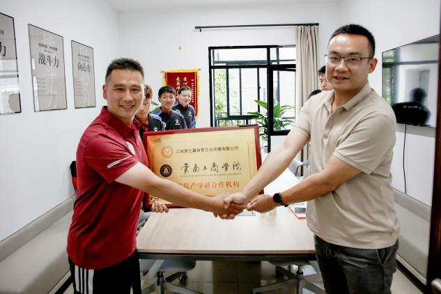 2023年5月26日中午,云南梦之翼体育公司一行来到云南工商学院教育学院签署产学研合作协议。云南工商学院教育学院党委书记杨超智、体育系主任郭雷及梦之翼体育公司总经理许晓明等参加了本次签约仪式。