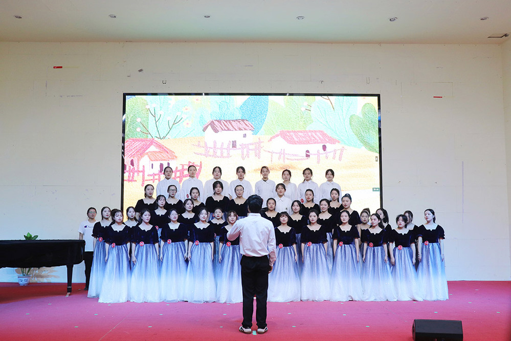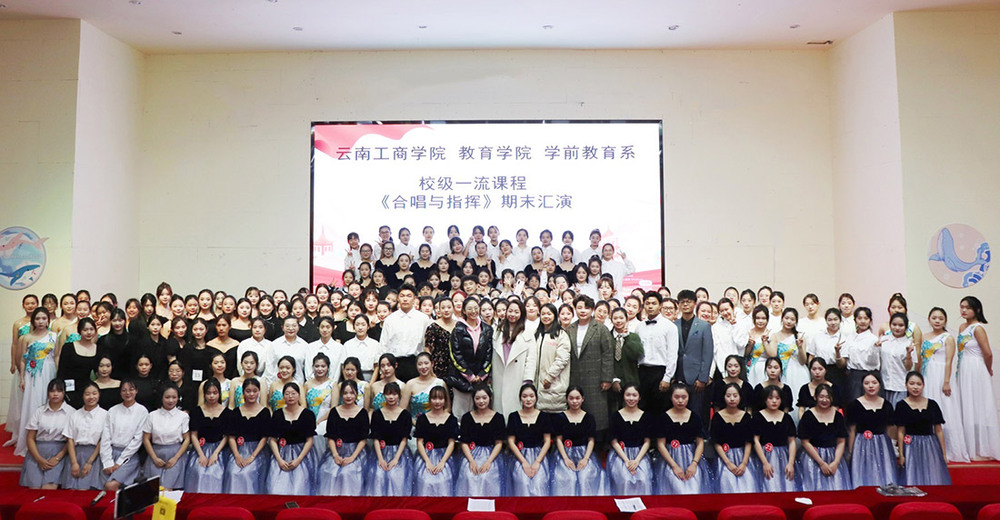 在贯彻落实习近平总书记关于教育的重要论述和全国教育大会精神,落实新时代全国高等学校本科教育工作会议要求,全面振兴本科教育,推动高校教育教学改革成果落实到课程建设的背景下。为加强我校一流本科课程建设,进一步提升课程建设质量,2023年12月27日,教育学院学前教育专业《合唱与指挥》“校级一流课程建设阶段性教学成果”汇报展演在报告厅儿童剧场举行。