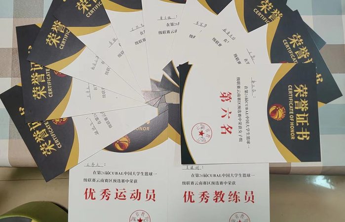 2024年1月3日,云南省第二十六届中国大学生篮球联赛(CUBAL)在云南财经大学落下帷幕。此次比赛为云南省大学生篮球比赛中的最高级别赛事,分为高职高专院校组(三级联赛)、非体育专业组(二级联赛)、体育专业组(一级联赛)。我校在各级领导的支持下,由吴晓刚、王耀康、杨建辉、阳军老师作为教练员,报名参加了二级联赛男子、女子五人制,一级联赛男子、女子五人制的比赛。经过为期八天的比赛,我校队伍赛出风格,赛出水平,取得了一定的成绩!