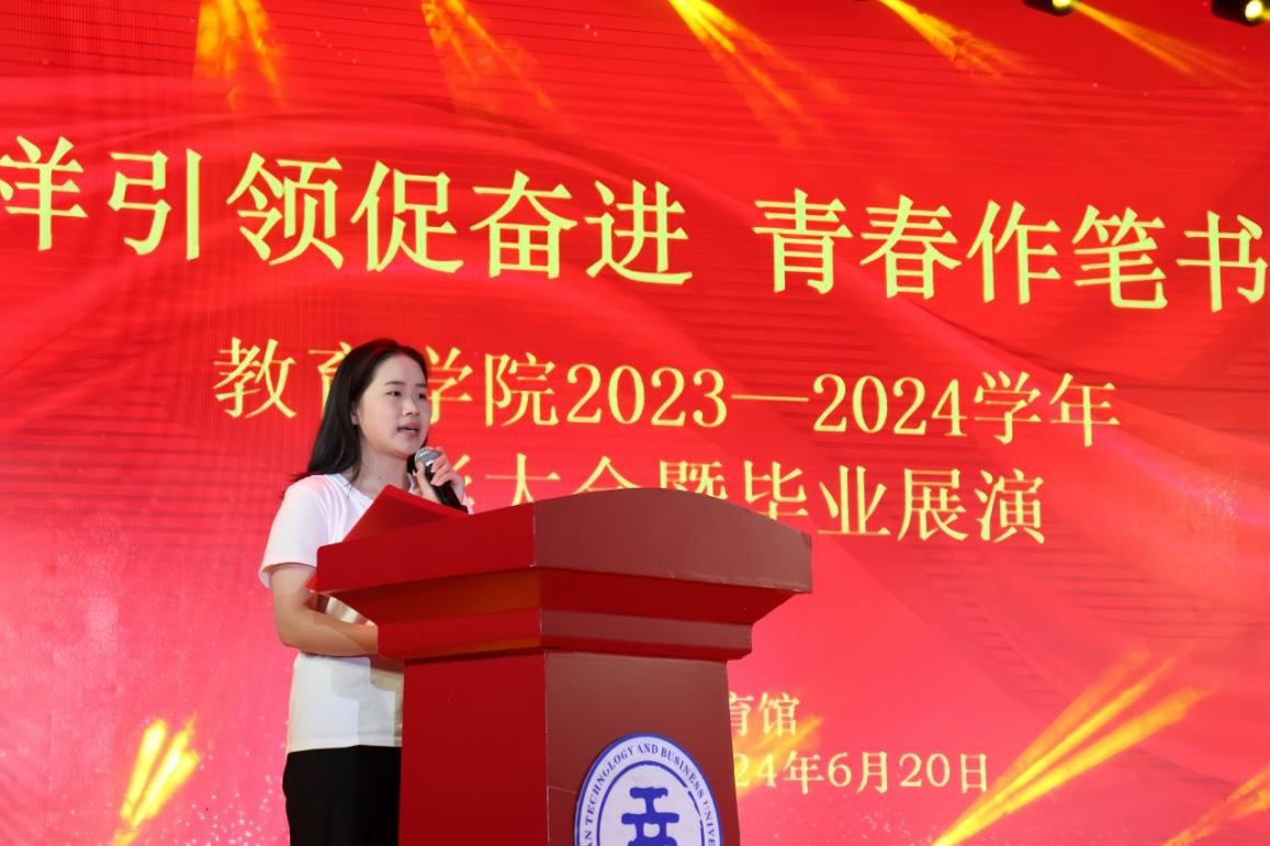 为持续加强学校学风建设工作,营造浓厚的学习氛围和良好的育人环境,总结经验、表彰先进、树立典型,激发学生荣誉感,推进专业高质量建设,推动学风建设内涵式发展,6月20日下午,教育学院在体育馆隆重举行2023—2024学年表彰大会暨毕业展演。
