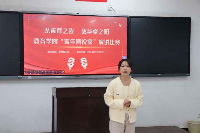 为深入学习贯彻党的二十大精神,激发广大青年在新征程上踔厉奋发、勇毅前行的决心和斗志,培养年轻一代的自信心和创新思维,引领广大青年学生以实际行动迎接伟大祖国75岁华诞,弘扬爱国主义精神,立志为推进中国式现代化事业、民族复兴大业挺膺担当,贡献青春力量。教育学院于11月成功举办了“以青春之我,逐华夏之阳”演讲比赛。此次活动吸引了众多师生的积极参与,现场气氛热烈。