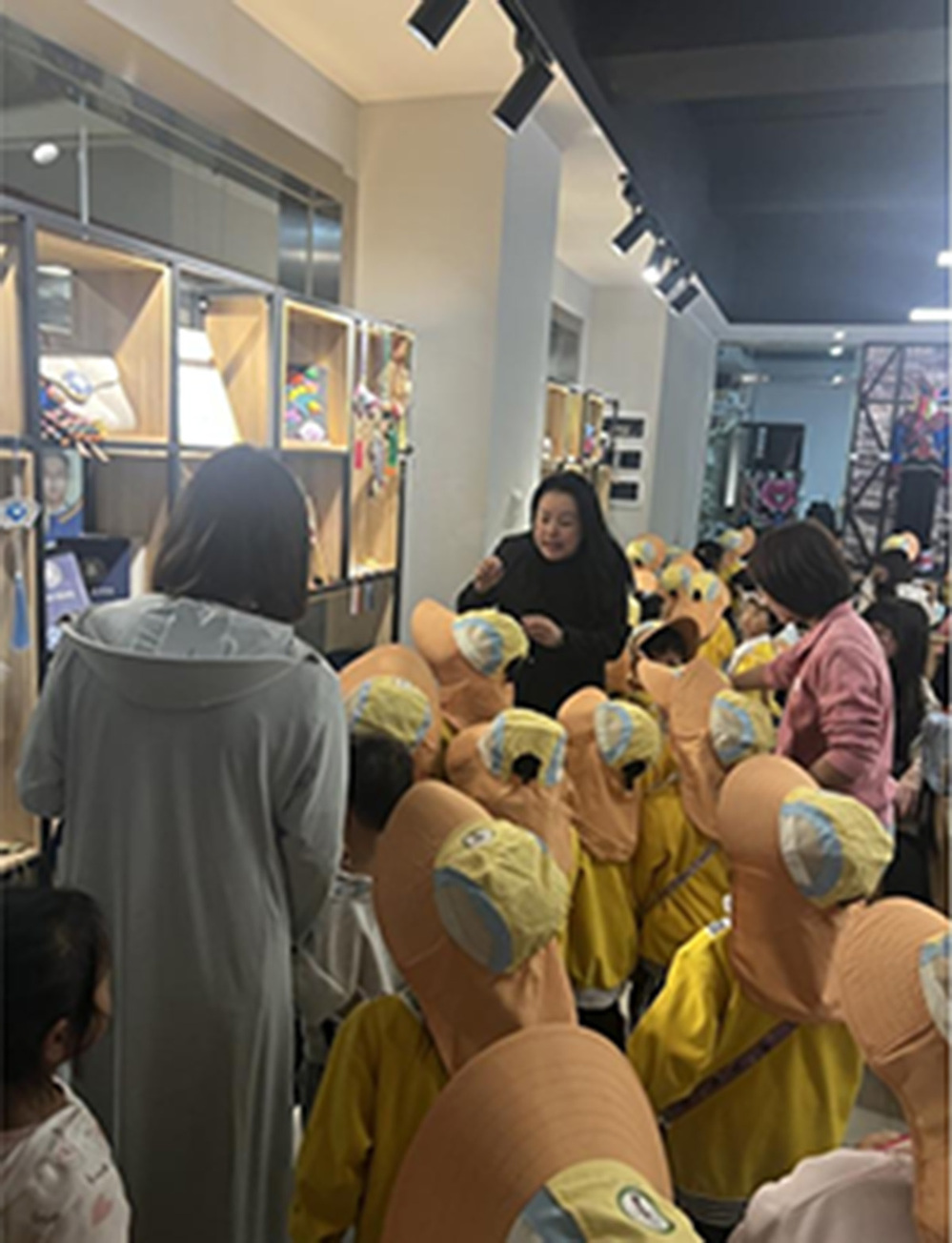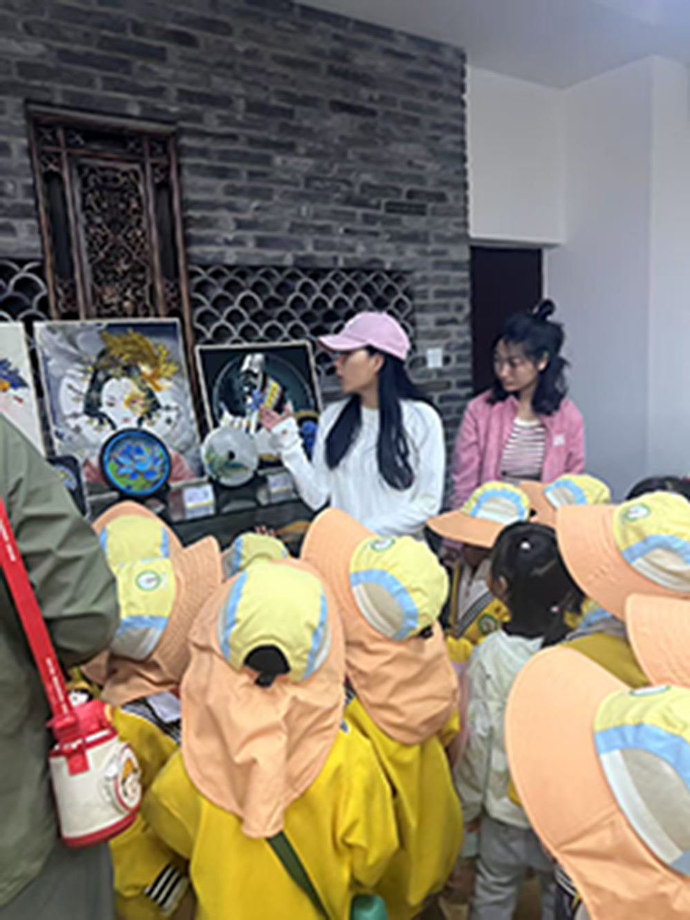党史馆内,教育学院张颖院长以生动的语言向孩子们讲述了党的光辉历程;翠羽银丝工作室中,孩子们近距离地体验了传统工艺的魅力。在“红色教育+文化传承”的创新模式下,充分体现了高校实践育人的特色与责任。通过本次实践活动,不仅巩固了专业知识,学前教育专业的学生还获得了宝贵的实战经验。