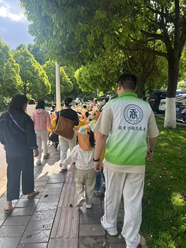 活动伊始,小朋友们在老师和教育学院志愿者同学的陪伴下,开启了对校园的探索。第一站来到学校图书馆,当踏入这片知识的殿堂,安静的氛围与琳琅满目的书籍瞬间吸引了小朋友们的目光。在老师的耐心引导下,小朋友们饶有兴致地了解了图书馆的基本功能和丰富的藏书种类。浓厚的学习氛围如同一颗种子,播撒在小朋友们心中,激发了他们对知识的强烈渴望。