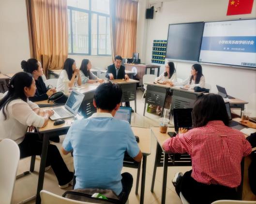 2025 年 5 月 14 日,小学教育系组织 30 余名教师开展专题研讨活动,围绕课程群建设、教学改革、教师专业发展等核心议题,分学科方向教研组、专业基础课程教研组展开深入交流。本次研讨特别邀请崔玉平教授、包乌兰教授两位银龄专家担任主讲,为教师们传经送宝,指点迷津。