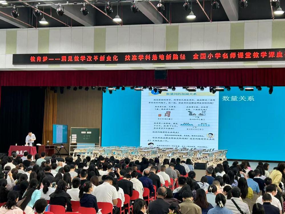 研修现场,吴正宪、徐长青等特级教师以《曹冲称象》《四边形的内角和》等课例为载体,构建“生活情境—逻辑推理—数学建模”的探究链条,将“推理意识扎根生活”的育人理念具象化;张宏伟、蒋守成等教师则通过“全景式数学教育”“跨学科项目化学习”实践,展现“AI赋能课堂”“做中学”等创新样态,呈现教学从知识传递转向思维激发、从单向输出转向多元共生的变革图景。参会教师系统学习“大单元整合”“跨学科融合”策略,深度体悟“以学为中心”的课堂生态重构。