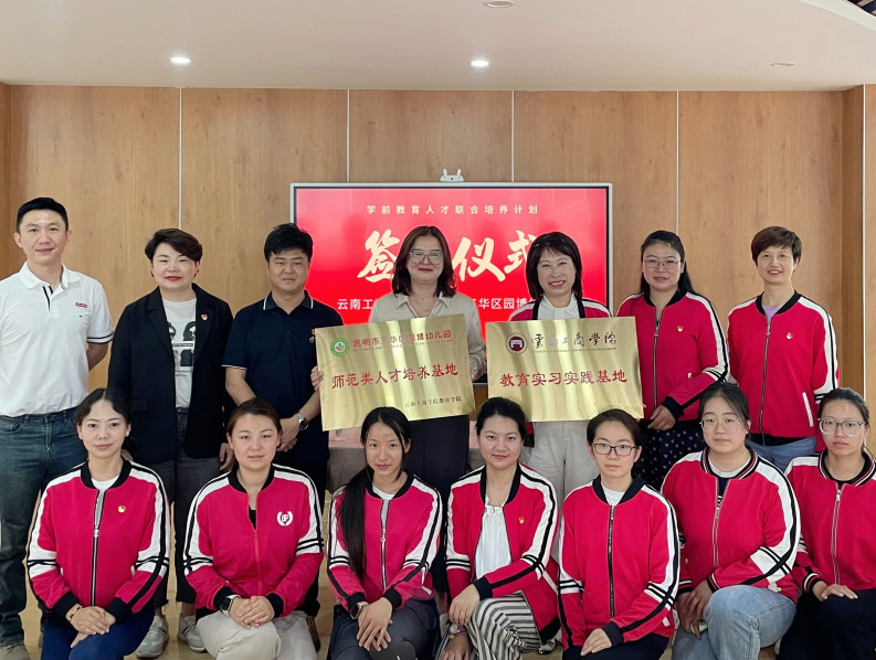 2025年6月18日,云南工商学院教育学院与昆明市五华区园博幼儿园举行战略合作签约暨实训平台揭牌仪式。云南工商学院教育学院学前教育系系主任杨贺芳、学生发展中心副主任骆闲、学前教育系副系主任王静波、骨干教师蔡柏臣,以及园博幼儿园园长王松梅携骨干教师团队共同出席仪式。此次合作以学生中心、雇主导向为核心理念,通过产教深度融合,培养符合行业需求的高素质学前教育人才,为地方学前教育发展提供有力支撑。